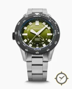 Eine GMT-Uhr mit einem 32.5mm Gehäuse im Vintage-Stil gefertigt aus Edelstahl mit einem Zifferblatt in grün und einer besonderen "sunburst gradient"-Oberfläche und einer echten GMT-Funktion, mit der du eine zweite Zeitzone verfolgen kannst.