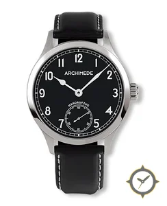 Eine Pilot-Uhr mit einem markanten 44mm Auftritt am Handgelenk, gefertigt aus Edelstahl mit einem Zifferblatt in schwarz und einer besonderen "matte"-Oberfläche.