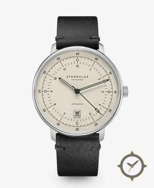 Eine Minimalistisch-Uhr mit einem 36.5mm Gehäuse im Vintage-Stil gefertigt aus Edelstahl mit einem Zifferblatt in weiß und einer besonderen "matte"-Oberfläche.