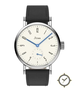 Eine Minimalistisch-Uhr mit einem 33.5mm Gehäuse im Vintage-Stil gefertigt aus Edelstahl mit einem Zifferblatt in weiß und einer besonderen "matte"-Oberfläche.