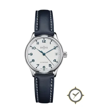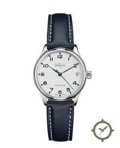 Eine Dress-Uhr mit einem 37mm Gehäuse im Vintage-Stil gefertigt aus Edelstahl mit einem Zifferblatt in weiß und einer besonderen "matte"-Oberfläche.
