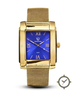 Eine Dress-Uhr mit einem 36mm Gehäuse im Vintage-Stil gefertigt aus Gold mit einem Zifferblatt in blau und einer besonderen "sunburst"-Oberfläche.