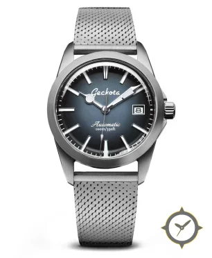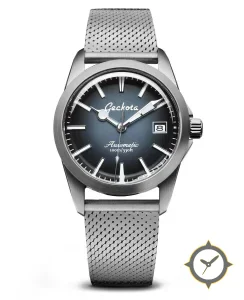 Eine Fahrer-Uhr mit einem markanten 47mm Auftritt am Handgelenk, gefertigt aus Edelstahl mit einem Zifferblatt in blau und einer besonderen "fumé sunburst"-Oberfläche.