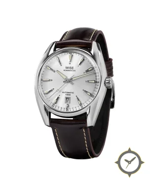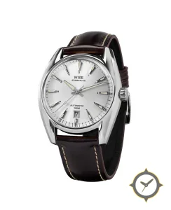 Eine Dress-Uhr mit einem 35.5mm Gehäuse im Vintage-Stil gefertigt aus Edelstahl mit einem Zifferblatt in silber und einer besonderen "sunburst"-Oberfläche.