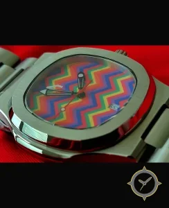Eine Sport-Uhr mit einem vielseitigen 40.5mm Gehäuse, das an fast jedes Handgelenk passt, gefertigt aus Edelstahl mit einem Zifferblatt in rot und einer besonderen "smooth with printed chevron/zigzag"-Oberfläche.