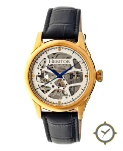 Eine Skelett-Uhr mit einem vielseitigen 41mm Gehäuse, das an fast jedes Handgelenk passt, gefertigt aus Gold mit einem Zifferblatt in silber und einer besonderen "skeleton / open-work"-Oberfläche.