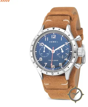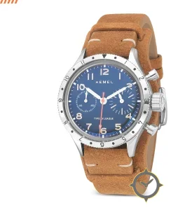 Eine Chronograph-Uhr mit einem markanten 46mm Auftritt am Handgelenk, gefertigt aus Edelstahl mit einem Zifferblatt in blau und einer besonderen "sunburst"-Oberfläche.