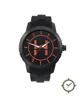 Eine Sport-Uhr mit einem markanten 44.5mm Auftritt am Handgelenk, gefertigt aus Edelstahl mit einem Zifferblatt in schwarz und einer besonderen "matte"-Oberfläche.