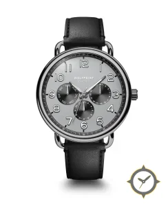 Eine Dress-Uhr mit einem 36mm Gehäuse im Vintage-Stil gefertigt aus Edelstahl mit einem Zifferblatt in grau und einer besonderen "matte"-Oberfläche.