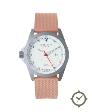 Eine Sport-Uhr mit einem 31mm Gehäuse im Vintage-Stil gefertigt aus Titan mit einem Zifferblatt in weiß und einer besonderen "concentric guilloche rings"-Oberfläche.