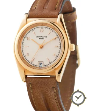 Eine Dress-Uhr gefertigt aus Gold mit einem Zifferblatt in weiß und einer besonderen "smooth lacquer"-Oberfläche.