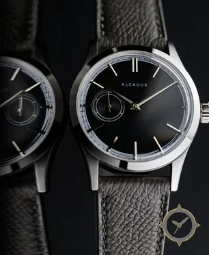 Eine Dress-Uhr mit einem 34mm Gehäuse im Vintage-Stil gefertigt aus Edelstahl mit einem Zifferblatt in schwarz und einer besonderen "lacquer (high-gloss)"-Oberfläche.