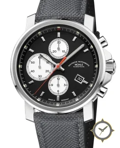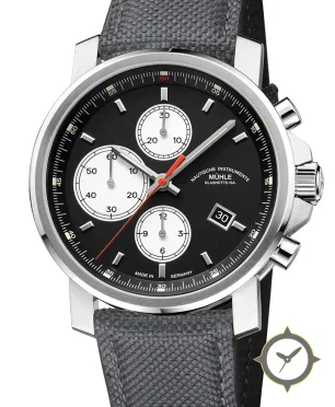 Eine Chronograph-Uhr mit einem vielseitigen 39.5mm Gehäuse, das an fast jedes Handgelenk passt, gefertigt aus Edelstahl mit einem Zifferblatt in schwarz und einer besonderen "matte"-Oberfläche.