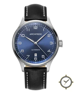 Eine Pilot-Uhr mit einem markanten 49mm Auftritt am Handgelenk, gefertigt aus Edelstahl mit einem Zifferblatt in blau und einer besonderen "sunburst metallic"-Oberfläche.
