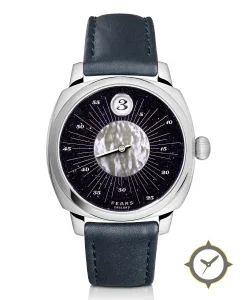 Eine Dress-Uhr mit einem vielseitigen 41mm Gehäuse, das an fast jedes Handgelenk passt, gefertigt aus Edelstahl mit einem Zifferblatt in marineblau und einer besonderen "outer aventurine (starry) texture with a central mother-of-pearl disc"-Oberfläche.