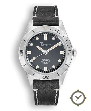 Eine Taucheruhr-Uhr mit einem 36mm Gehäuse im Vintage-Stil gefertigt aus Edelstahl mit einem Zifferblatt in schwarz und einer besonderen "matte"-Oberfläche.