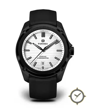 Eine Sport-Uhr mit einem markanten 42.5mm Auftritt am Handgelenk, gefertigt aus Beschichtung mit einem Zifferblatt in weiß und einer besonderen "horizontal lined texture"-Oberfläche.
