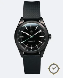 Eine Minimalistisch-Uhr mit einem vielseitigen 40mm Gehäuse, das an fast jedes Handgelenk passt, gefertigt aus Edelstahl mit einem Zifferblatt in schwarz und einer besonderen "matte with recessed inner chapter ring"-Oberfläche.