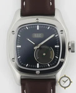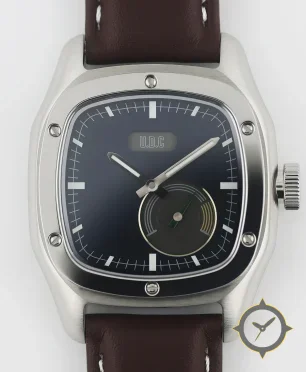 Eine Tool-Uhr mit einem markanten 44.5mm Auftritt am Handgelenk, gefertigt aus Edelstahl mit einem Zifferblatt in marineblau und einer besonderen "matte"-Oberfläche.
