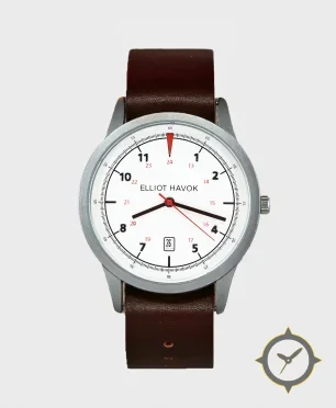 Eine Field-Uhr mit einem vielseitigen 41mm Gehäuse, das an fast jedes Handgelenk passt, gefertigt aus Edelstahl mit einem Zifferblatt in weiß und einer besonderen "matte"-Oberfläche und einer echten GMT-Funktion, mit der du eine zweite Zeitzone verfolgen kannst.