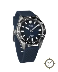 Eine Taucheruhr-Uhr mit einem markanten 44.5mm Auftritt am Handgelenk, gefertigt aus Edelstahl mit einem Zifferblatt in marineblau und einer besonderen "sunburst gradient"-Oberfläche.
