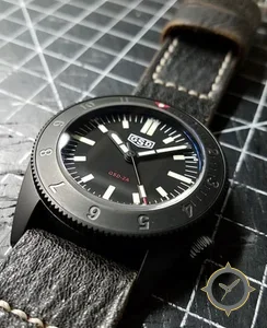 Eine Taktisch-Uhr mit einem markanten 41.5mm Auftritt am Handgelenk, gefertigt aus Edelstahl mit einem Zifferblatt in schwarz und einer besonderen "matte"-Oberfläche.
