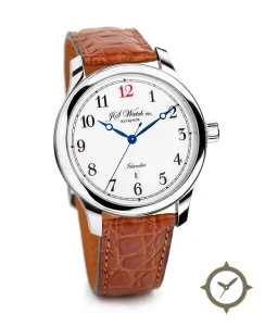 Eine Dress-Uhr mit einem vielseitigen 40.5mm Gehäuse, das an fast jedes Handgelenk passt, gefertigt aus Edelstahl mit einem Zifferblatt in weiß und einer besonderen "enamel"-Oberfläche.