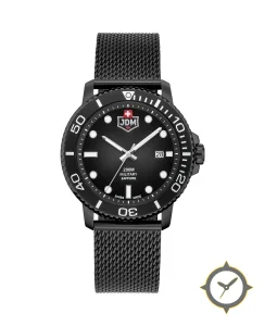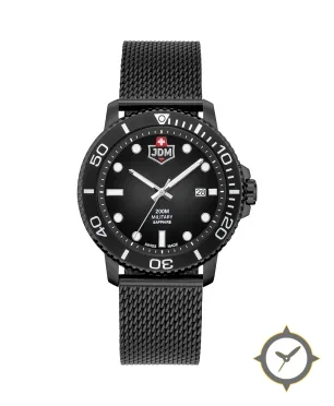 Eine Taucheruhr-Uhr mit einem markanten 46.5mm Auftritt am Handgelenk, gefertigt aus Edelstahl mit einem Zifferblatt in schwarz und einer besonderen "matte"-Oberfläche.