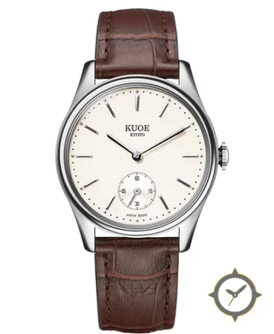 Eine Dress-Uhr mit einem 31.5mm Gehäuse im Vintage-Stil gefertigt aus Edelstahl mit einem Zifferblatt in weiß und einer besonderen "matte smooth"-Oberfläche.