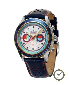 Eine Chronograph-Uhr mit einem vielseitigen 39mm Gehäuse, das an fast jedes Handgelenk passt, gefertigt aus Edelstahl mit einem Zifferblatt in weiß und einer besonderen "textured / grained finish"-Oberfläche.