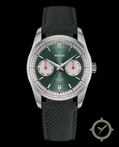 Eine Dress-Uhr mit einem vielseitigen 38.5mm Gehäuse, das an fast jedes Handgelenk passt, gefertigt aus Edelstahl mit einem Zifferblatt in grün und einer besonderen "sunburst (gradient)"-Oberfläche.