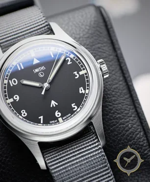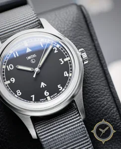 Eine Field-Uhr mit einem 29.5mm Gehäuse im Vintage-Stil gefertigt aus Edelstahl mit einem Zifferblatt in schwarz und einer besonderen "matte"-Oberfläche.