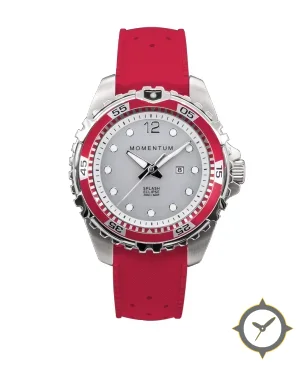 Eine Taucheruhr-Uhr mit einem markanten 45mm Auftritt am Handgelenk, gefertigt aus Edelstahl mit einem Zifferblatt in weiß und einer besonderen "smooth"-Oberfläche.