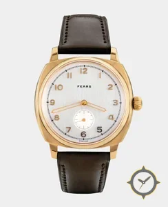 Eine Dress-Uhr mit einem 33.5mm Gehäuse im Vintage-Stil gefertigt aus Gold mit einem Zifferblatt in silber und einer besonderen "brushed"-Oberfläche.