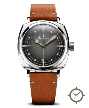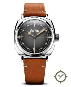 Eine Vintage-Uhr mit einem markanten 47mm Auftritt am Handgelenk, gefertigt aus Edelstahl mit einem Zifferblatt in grau und einer besonderen "fumé gradient"-Oberfläche.