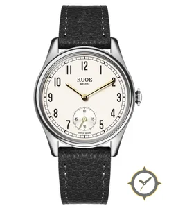 Eine Dress-Uhr mit einem 31mm Gehäuse im Vintage-Stil gefertigt aus Edelstahl mit einem Zifferblatt in weiß und einer besonderen "matte"-Oberfläche.