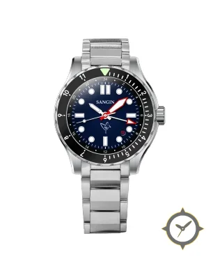 Eine Sport-Uhr mit einem 36.5mm Gehäuse im Vintage-Stil gefertigt aus Edelstahl mit einem Zifferblatt in marineblau und einer besonderen "sunburst"-Oberfläche.