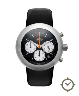 Eine Chronograph-Uhr mit einem markanten 52mm Auftritt am Handgelenk, gefertigt aus Edelstahl mit einem Zifferblatt in schwarz und einer besonderen "matte"-Oberfläche.