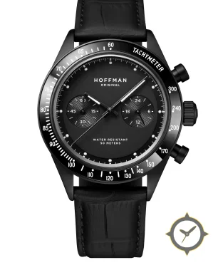 Eine Chronograph-Uhr mit einem 32.5mm Gehäuse im Vintage-Stil gefertigt aus Edelstahl mit einem Zifferblatt in schwarz und einer besonderen "matte"-Oberfläche.