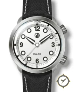 Eine Taucheruhr-Uhr mit einem markanten 43mm Auftritt am Handgelenk, gefertigt aus Edelstahl mit einem Zifferblatt in weiß und einer besonderen "matte"-Oberfläche.
