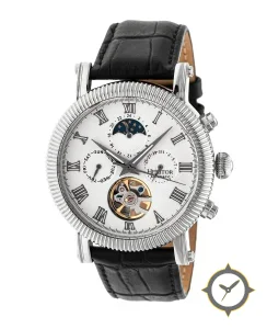 Eine Dress-Uhr mit einem markanten 48.5mm Auftritt am Handgelenk, gefertigt aus Edelstahl mit einem Zifferblatt in weiß und einer besonderen "guilloché"-Oberfläche und einer wunderschönen Mondphasenanzeige.