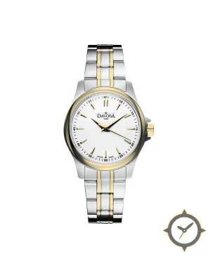 Eine Dress-Uhr mit einem 31.5mm Gehäuse im Vintage-Stil gefertigt aus Edelstahl mit einem Zifferblatt in weiß und einer besonderen "matte"-Oberfläche.