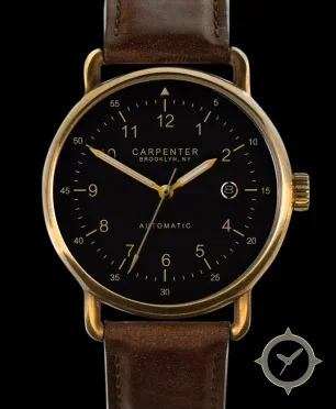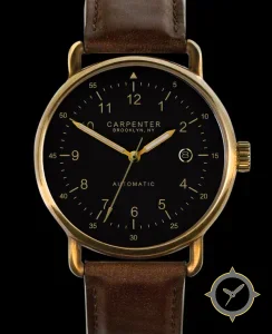 Eine Pilot-Uhr mit einem 37mm Gehäuse im Vintage-Stil gefertigt aus Bronze mit einem Zifferblatt in schwarz und einer besonderen "matte"-Oberfläche.