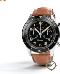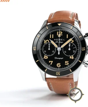 Eine Chronograph-Uhr mit einem 36.5mm Gehäuse im Vintage-Stil gefertigt aus Edelstahl mit einem Zifferblatt in schwarz und einer besonderen "matte"-Oberfläche.