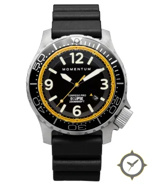 Eine Taucheruhr-Uhr mit einem markanten 44.5mm Auftritt am Handgelenk, gefertigt aus Edelstahl mit einem Zifferblatt in schwarz und einer besonderen "gloss"-Oberfläche.