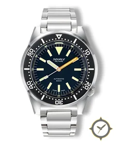 Eine Taucheruhr-Uhr mit einem 37mm Gehäuse im Vintage-Stil gefertigt aus Edelstahl mit einem Zifferblatt in marineblau und einer besonderen "matte"-Oberfläche.
