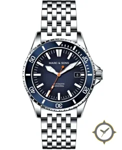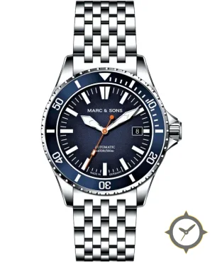 Eine Taucheruhr-Uhr mit einem markanten 42.5mm Auftritt am Handgelenk, gefertigt aus Edelstahl mit einem Zifferblatt in marineblau und einer besonderen "sunburst gradient"-Oberfläche.