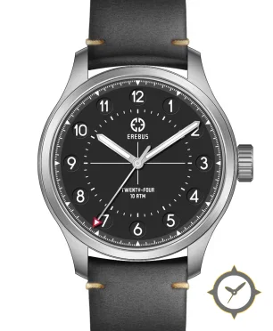 Eine Pilot-Uhr mit einem vielseitigen 38.5mm Gehäuse, das an fast jedes Handgelenk passt, gefertigt aus Edelstahl mit einem Zifferblatt in schwarz und einer besonderen "matte"-Oberfläche.