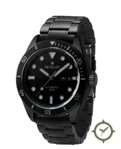 Eine Taucheruhr-Uhr mit einem vielseitigen 39.5mm Gehäuse, das an fast jedes Handgelenk passt, gefertigt aus Edelstahl mit einem Zifferblatt in schwarz und einer besonderen "matte"-Oberfläche.