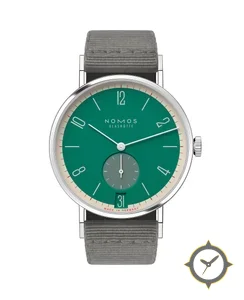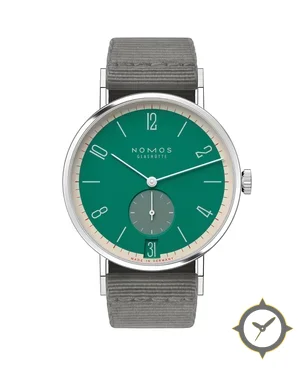 Eine Minimalistisch-Uhr mit einem vielseitigen 38mm Gehäuse, das an fast jedes Handgelenk passt, gefertigt aus Edelstahl mit einem Zifferblatt in grün und einer besonderen "matte"-Oberfläche.